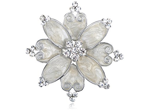 -. Title : Alilang Hand Painted Pearlescent White Enamel Czech Crystal Rhinestone Flower Brooch Pin Silvery Tone