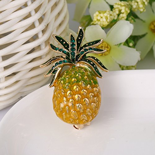 -. Title : EVER FAITH Women's Austrian Crystal Yellow Enamel Tropical Pineapple Fruit Brooch Green Gold-Tone