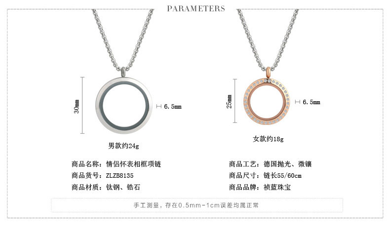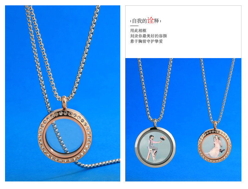 韩版相框项链 可放照片相片定制情侣吊坠配饰男女挂饰品 个性挂件