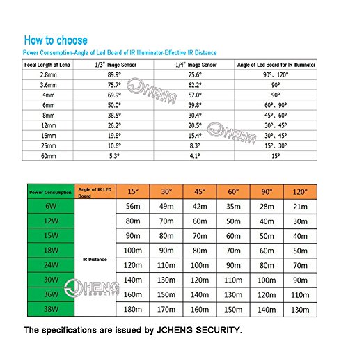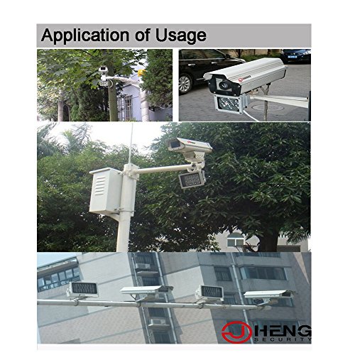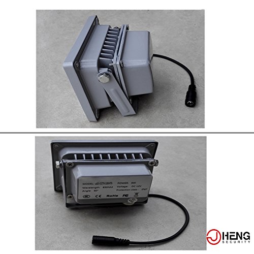 -. Feature : Long distance of up to 164 feet (20-50meters) illuminating by 6pcs of High Power Infrared Array Leds. Wide angle 60 degree, Waterproof IP67,Size:112mm*83mm*76mm,with high quality aluminum case&reinforced glass window.Net weight:13.6 ounces / Compatible ONLY with 850NM WAVE LENGTH infared/night vision camera.Notes:The non-ir cameras which don't have Infrared LED lights WILL NOT FIT OUR ILLUMINATOR,as lens of non-ir cameras doesn't with IR coating,it couldn't sense 850nm infrared light.Work with CCTV camera and IP camera(both should have 850nm IR Leds),Greatly improve the performance for weak-light infrared cameras,help providing better night vision image / Built-in light sensor,will automatically control the light on/off during the day time and night time.To protect the sensor,please install the senor head down to avoid direct sun exposure during installation / Sest to match with DC12V 1A power adaptor,Connection of power supply:5.5x2.1mm (Power Adapter Excluded),The camera and illuminator should be installed to the same horizontal and vertical direction.Pls take reference of the installation photo we put on our product page / 3 Years Quality Warranty.Any problems pls contact with us by after service mail:support@jcheng-security.com