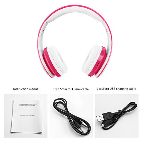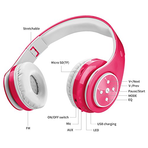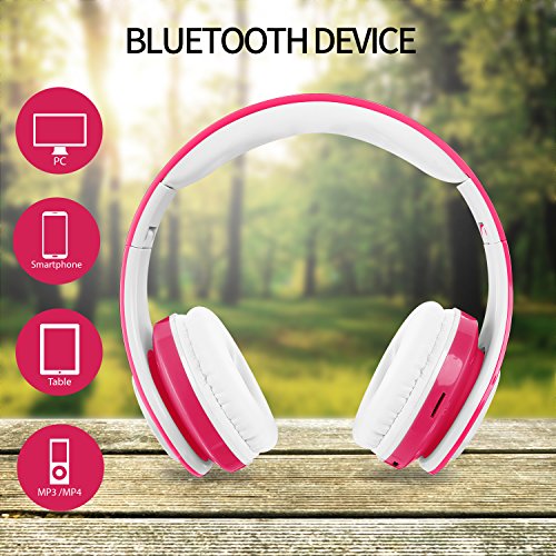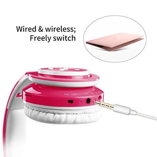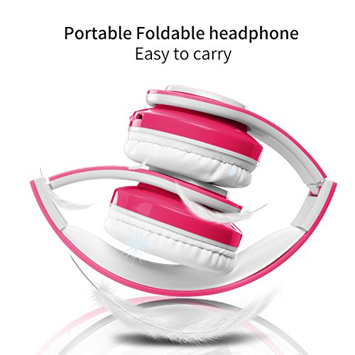 Votones-Wireless Bluetooth Kids Headphones Lightweight Foldable Adjustable Over Ear Earphone with Microphone Aux in SD Card FM for Smartphone PC Tablet(Pink)