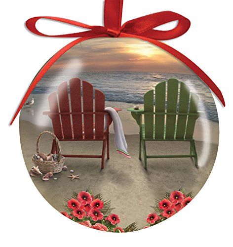 Adirondack Chairs and Hibiscus on the Beach, Basket of Shells High Gloss Resin Christmas Ornament