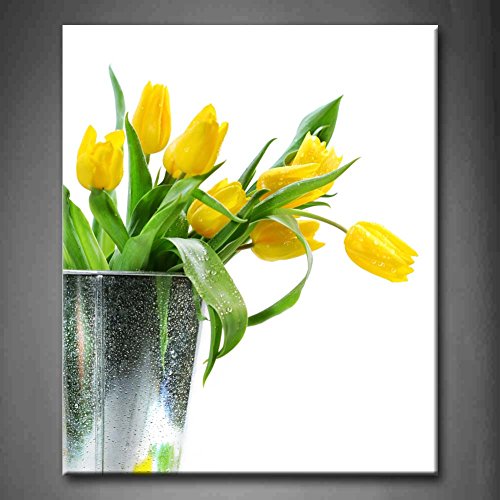 -. Title : First Wall Art - Green SP.R.Ing Flowers Yellow Tulip Wall Art Painting Pictures P.R.Int On Canvas Flower The Picture For Home Modern Decoration (Stretched By Wooden Frame,Ready To Hang)
