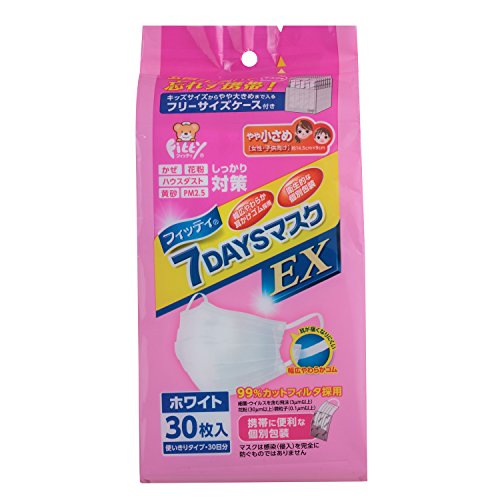 -. Title : (PM2.5対応)フィッティ 7DAYSマスク EX エコノミーパックケース付 やや小さめサイズ ホワイト 30枚入