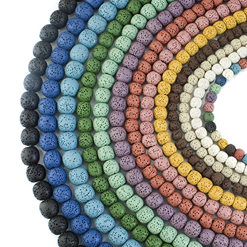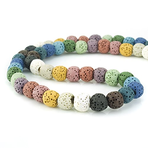 BEADNOVA 8mm Lava Rock Stone Gemstone semi precious stone Beads Round Loose Beads for Jewelry Making Findings Accessories 48~50pcs (8mm x 1 Strand, Mixed Color)