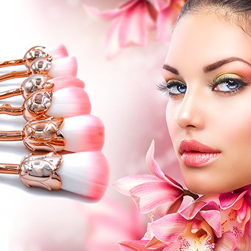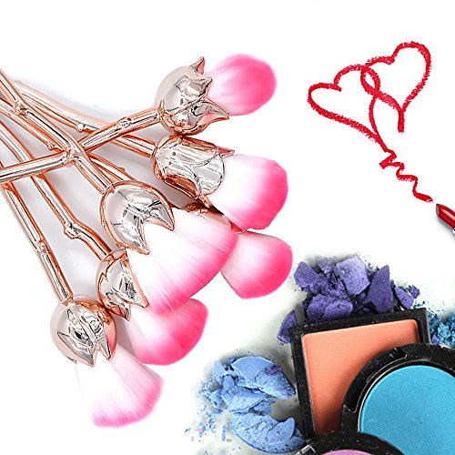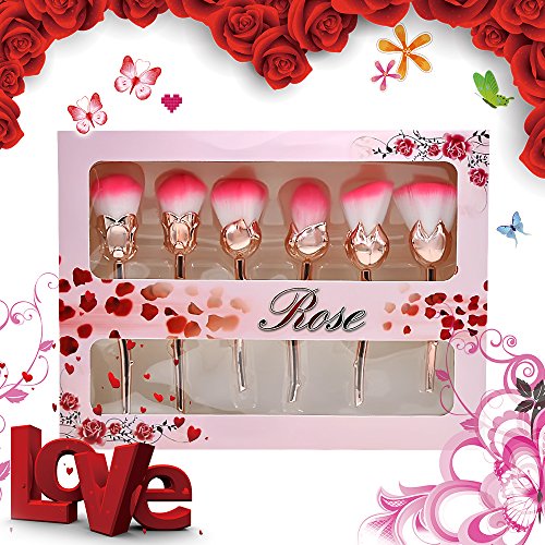 ? Features: Material: soft nylon bristles, plastic handleWeight: 150g Color: Rose Gold/ Green / MulticolorA/ MulticolorB 6pcs Brushes with Different Function: 1 - Powder blush brush 2 - Angle Contour Brush 3 - Foundation Brush 4 - Powder brush 5 - Concealer brush 6 - Shadow brush ? Package Included: 6pcs Rose Makeup Brushes ? How to clean: 1. Holding bristles face down, run bristles under warm water. 2. Gently squeeze out any excess water and makeup residue. 3. Apply a dime size amount of mild soap and olive oil into the palm of your hand. 4. Massage the bristles into your palm in a circular motion under running water until the water runs clear, being careful NOT to submerge the brush. 5. Gently squeeze out any excess water using a clean towel. 6. Let the bristles air dry in an open space. 0