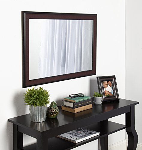 MINIMALIST DESIGN – This large vanity mirror comes in a traditional black and mahogany frame for classic home display and decoration. The frame is constructed of an elegant yet lightweight extruded plastic so you can hang it easily on the wall.