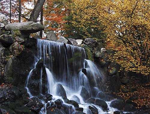 JP London MD91033UMBPS Peel and Stick Autumn Waterfall Rocks Full Wall Mural, 10.5-Feet by 8-Feet