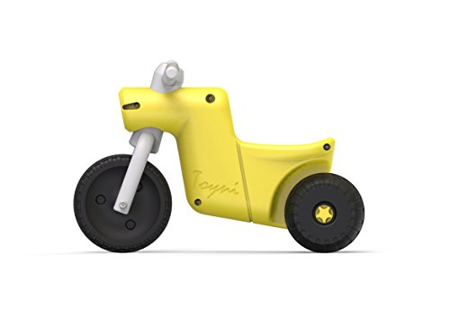 -. Feature : INTENDED USE: The Toyni 2-in-1 tricycle ride-on balance bike toy provides riding fun for kids ages 1 - 3 years old (up to 44 lbs). For indoor and outdoor play on smooth surfaces / HOW IT WORKS: Helps children find and keep their balance. Rear wheels convert from a more stable hourglass shape to a more advanced sphere shape, teaching the first stages of balance bike riding / CREATIVE DESIGN: Sporty, sleek design. Adjustable rear wheels change the degree of required balance from basic to more advanced. Steerable, with a limited turning feature for control / FEATURES: Durable injected and blow-molded plastic construction. Easy to clean. Available in blue, green, or yellow / FUNCTION: Ride, walk, scoot, and cruise; the Toyni is an innovative vehicle for fun, exercise, imagination, and adventure
