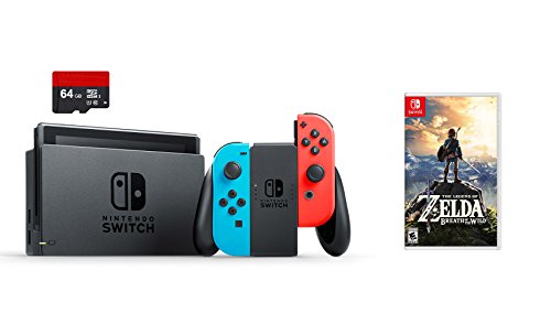 -. Title : Nintendo Swtich 3 items Bundle:Nintendo Switch 32GB Console Neon Red and Blue Joy-con ,64GB Micro SD Memory Card and The Legend of Zelda:Breath of the Wild