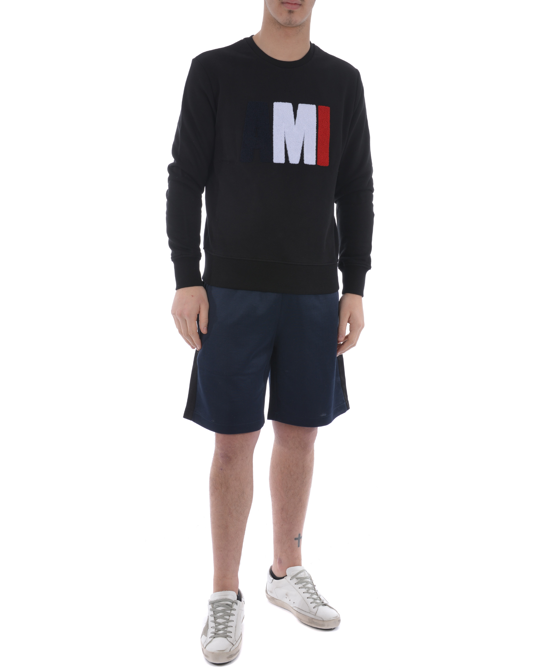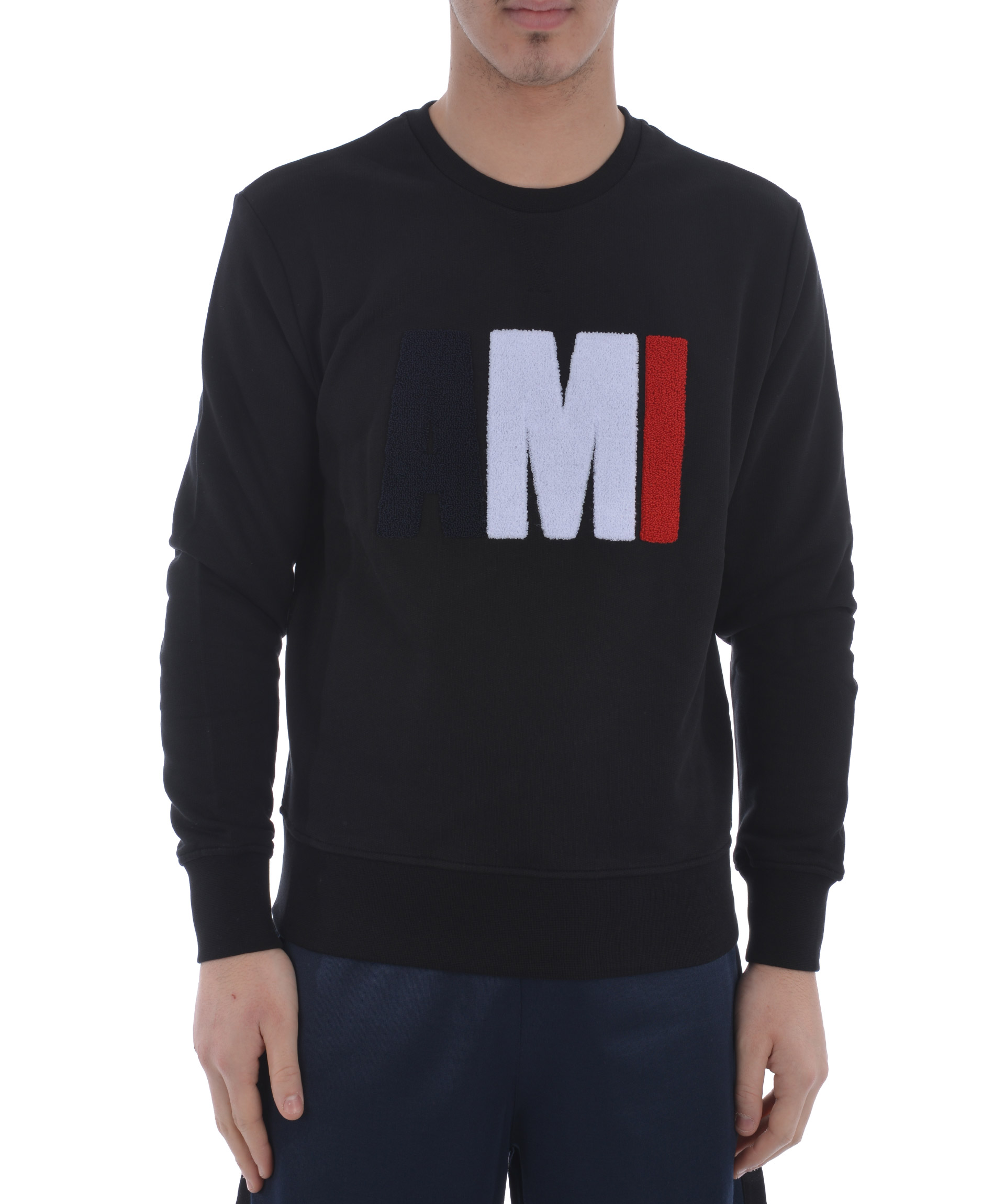 Terry Cloth Logo Sweatshirt from AMI Alexandre Mattiussi: Black Terry Cloth Logo Sweatshirt with round neck, long sleeves, logo at front, elasticated cuffs and hem.