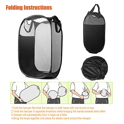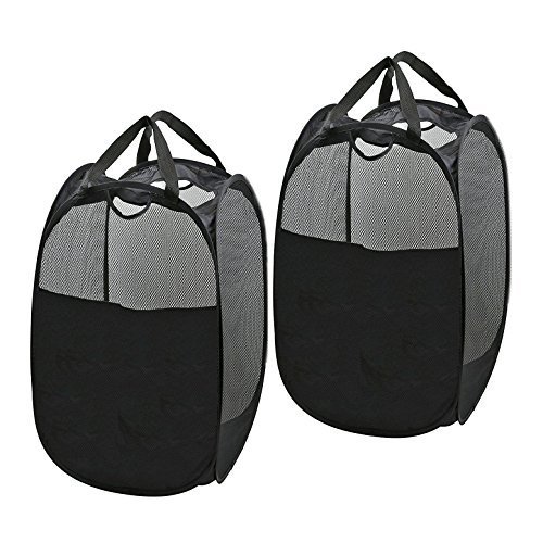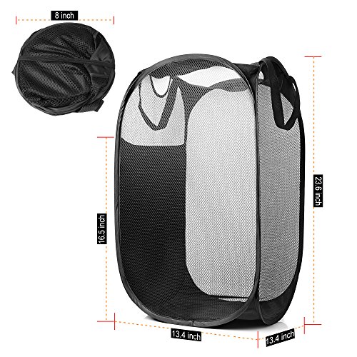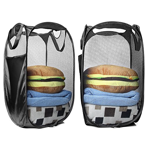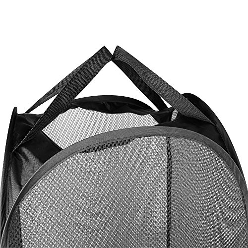 Foldable Mesh Pop-Up Laundry Hamper with Side Pocket,Laundry Basket Bag with Reinforced Carry Handles (Pack of 2--Black)