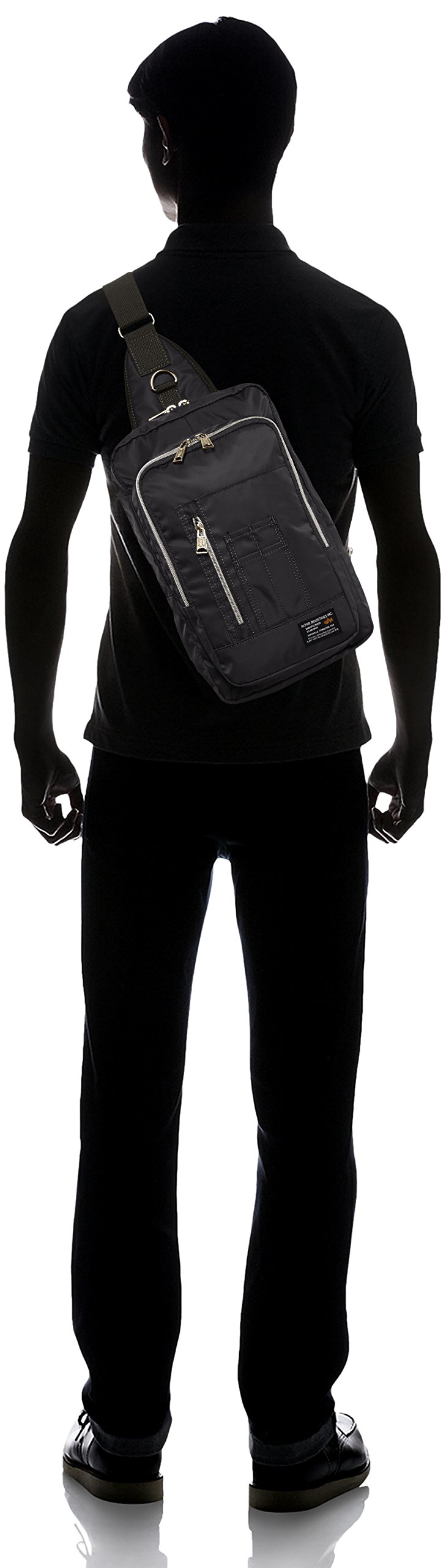 It is a large-capacity vertically-shaped body bag in which B5 notebooks and 500ml plastic bottles can fit completely.