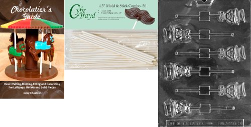 Cybrtrayd 'Skull with Hat Lolly' Halloween Chocolate Candy Mold with 50 4.5-Inch Lollipop Sticks and Chocolatier's Guide