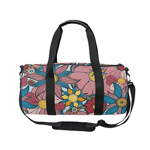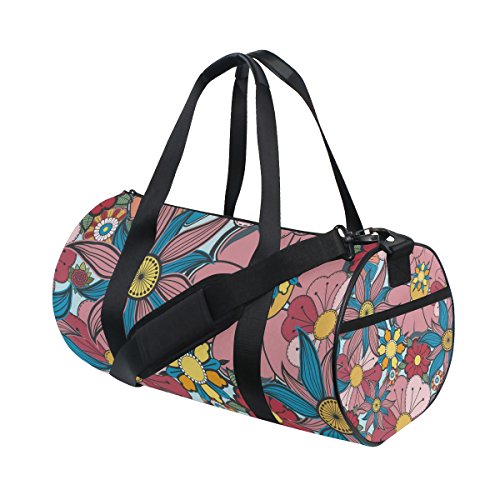 (AURELIOR)/Accessories/Luggage, Bags Travel/DIRECT FROM USA/AURELIOR Bright Flowers Floral Pattern Gym Duffle Bag Drum tote Fitness Shoulder Handbag Messen...