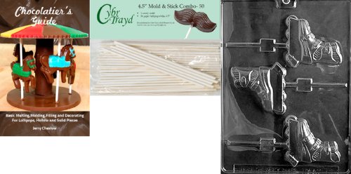 Cybrtrayd 'Roller Blade Lolly' Sports Chocolate Candy Mold with 50 4.5-Inch Lollipop Sticks and Chocolatier's Guide