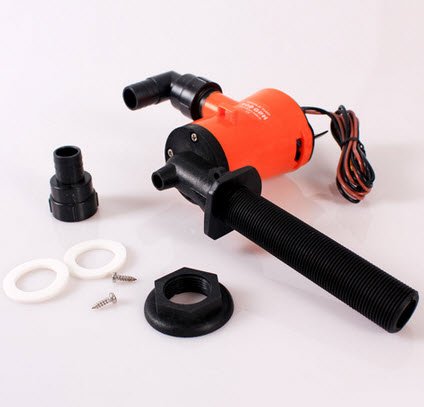 -. Feature : 600 GPH cartridge aerator livewell pump / Transom cutout hole: 1-1/16" (27mm) / Fills your livewell / bait tank with clean, oxygenated water to keep your catch healthy / Hose Outlet: 3/4" (19mm) / Voltage: 12V DC
