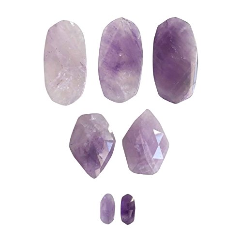 Stone/Color: Amethyst in Purple. This is a natural stone, and the color ranges from pale lilac to medium translucent purple. This stone has striations and inclusions. Each stone is unique.