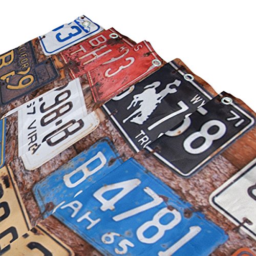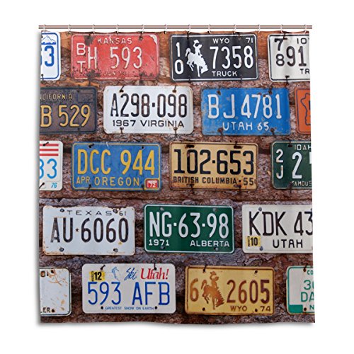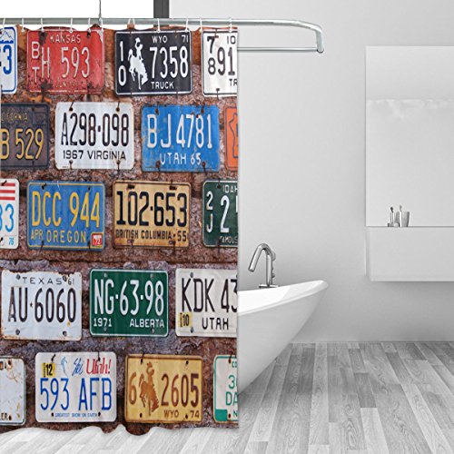 WellLee Old License Plates Museum on Bricks Shower Curtain Waterproof Fabric Fashion Custom Bathroom Decor 66 x 72 Inch with Hooks