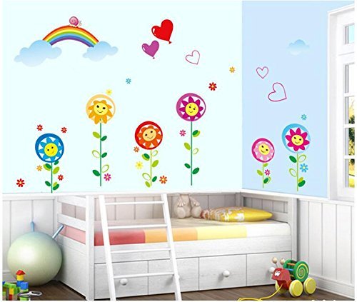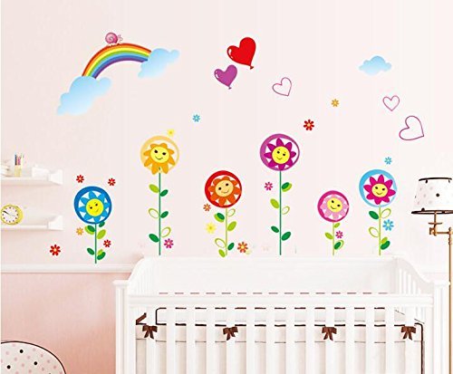 -. Title : Ryuan Cartoon Smiley Sunflower with Rainbow Wall Decal Sticker Nursery Children Room Decoration(50.2"*46")