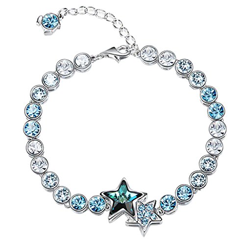 -. Title : [エレクイーン]EleQueen シルバートーン エレメント ラウンド ダブル 星 テニス ブレスレット 青 スワロフスキー クリスタルの使用 [並行輸入品]