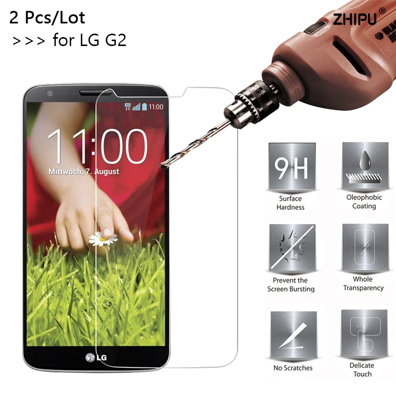 2 Pcs/Lot 2.5D 0.26mm 9H Premium Tempered Glass Screen Protector For LG G2 Optimus D801 D802 LS980 Toughened protective film