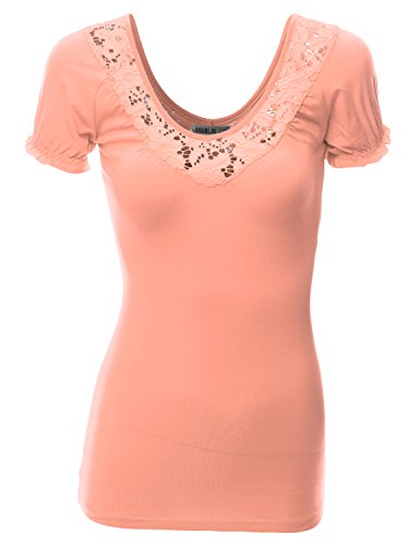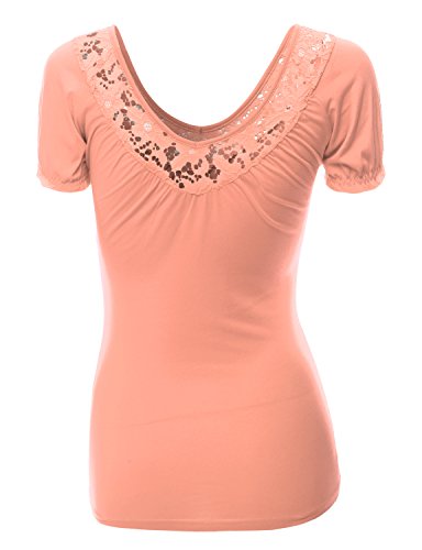 - Title : Doublju Womens Short Sleeve Fitted blouse Peach sin T-shirts,XL