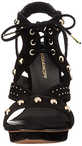 Product DescriptionPolished studs flow along the suede straps on these statement-making Rebecca Minkoff sandals. Tie closure. Covered heel and platform. Leather sole.0
