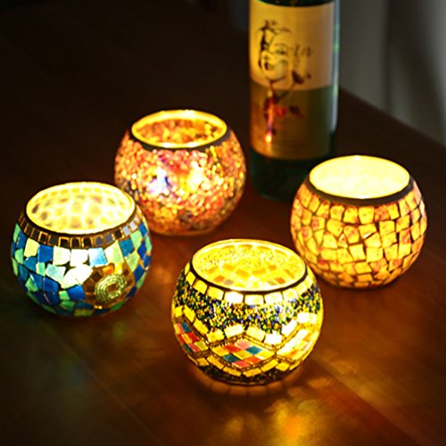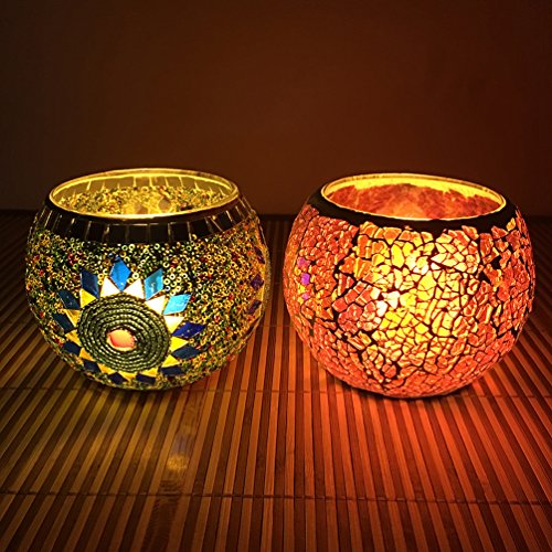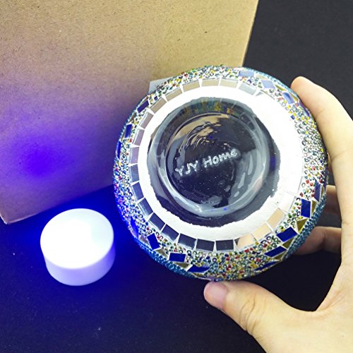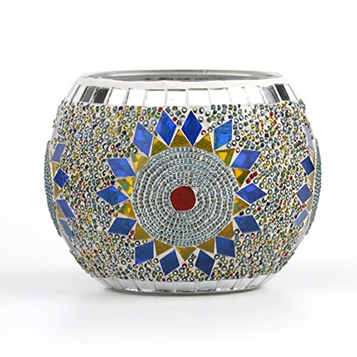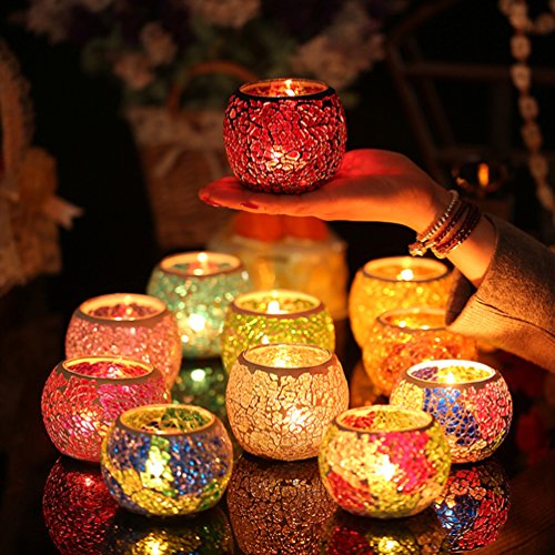 Description Size(1 inch=2.54cm): 10*8cm, can contain 6-7cm diameter candle. Weight: 400g. Material: glass and handmade mosaic. Model: magic bowl. Function: home office decor, car interior, candle holder, wedding decor, christmas decor etc. Color: various, see options. Packing: inner styrofoam and outer thick box. Function: decor for home festival, office, hotel, shopping mall and etc, make a proposal and vow.