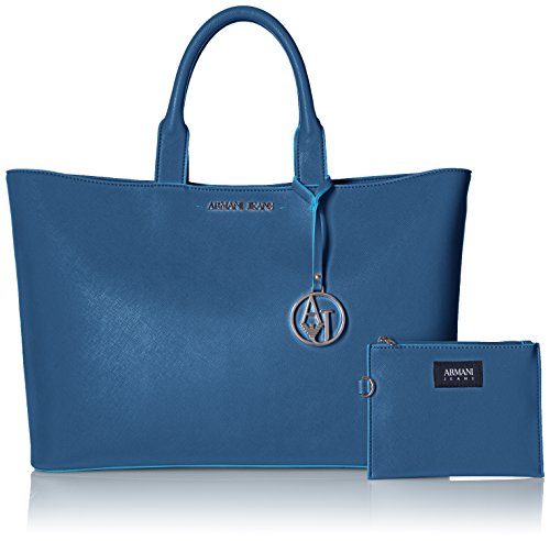 Armani Jeans Saffiano Color Trim Tote, Navy