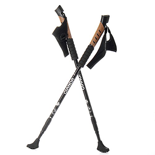 Specification: Material Lightweight aluminium alloy Color Black Size 66-135cm/26-53inch (Can extend up to 53inch) Weight Approx.636g Features: Anti-shock on/off mechanism, which reduce stress on knees, thighs shoulders and lower back. Easy twist lock adjustment system. Adjustable wrist strap which is excellent and easy to use. Carbide tip for soft surfaces. Replaceable rubber ferrules for pavement, indoor, boardwalk or similar use. Can be easily carried in a backpack . Extended, lightweight non-slip foam grip. Ergonomic cork grip offers a maximum non-slip, comfortable, natural and warm handhold. Package Included: 2 x Walking Sticks