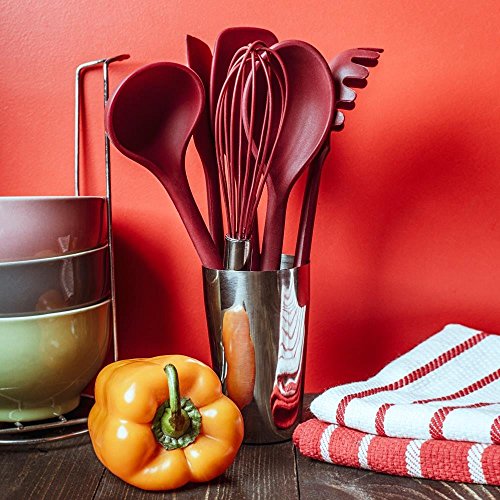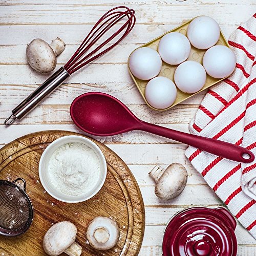 -. Feature : TACKLE ALL YOUR CULINARY NEEDS. Happiness is when you have all the essential cooking utensils with you, and can cook any type of meal or make a delicious desert easily and efficiently. Just make it real with COSA HOME AND KITCHEN 6 PIECE KITCHEN UTENSILS SET. This outstanding package comes with a decent set of utensils for everyday food prep tasks including a big spatula, ladle spoon, spaghetti spoon, soup ladle, spatula spoon and whisk. Perfect for both pro chefs and newbie! / TOP NOTCH QUALITY. Cosa Home and Kitchen Cooking Tool Set is carefully crafted from FDA approved and BPA free silicone for greater performance. The long ergonomic handles provide a perfect balance, easy grip and maximum control while the soft rounded edges make the utensils safe to use with almost any cooking surface. Also, the premium one piece design guarantees years of continuous use and makes these kitchen cooking utensils stain and odor resistant, easy to clean and dishwasher safe. / DURABLE AND VERSATILE. Each utensil in this top quality kitchen essentials kit is extremely heat and corrosion resistant. All the tools are heat resistant up to 450 Fahrenheit. They never get bent like plastic utensils, break like wooden kitchen tools or rust like other metallic utensils. You can store this tool and gadget set anywhere you like and it is a decent choice for long-term kitchen functionality. / A NOVEL GIFT. Cosa Home and Kitchen Silicone Utensil Set is the most appreciated gift that you can choose for your mom, wife or your best friend and it is ideal for weddings, birthdays and housewarming parties as well. Also, the stylish wine burgundy color of these kitchen accessories adds an elegant and modern style to your kitchen. / OUR PROMISE. Your satisfaction is our number one priority. So we relax to offer HASSLE FREE MONEY BACK GUARANTEE and provide 100% cash back against manufacturing defects. Also, if you have a problem or a concern, feel free to contact us anytime and our dedicated customer support team is ready to answer all of your questions promptly and completely. SO JUST MAKE YOUR WISE CHOICE TODAY!