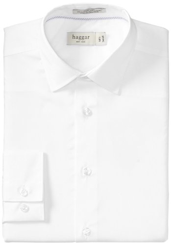 -. Title : Haggar Men's Fitted Mechanical Stretch Solid Long-Sleeve Dress Shirt