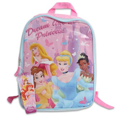 This cute backpack features your favorite Disney princesses: Cinderella, Belle, Tiana & Sleeping Beauty. Made with your child in mind, this adorable bookbag has adjustable and padded shoulder straps.