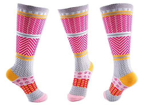 -. Feature : Soft knit construction provides comfort and warmth without bulk. / Non-binding top stretches to fit most calf sizes. / Colorful pattern adds a fun flair to your wardrobe.