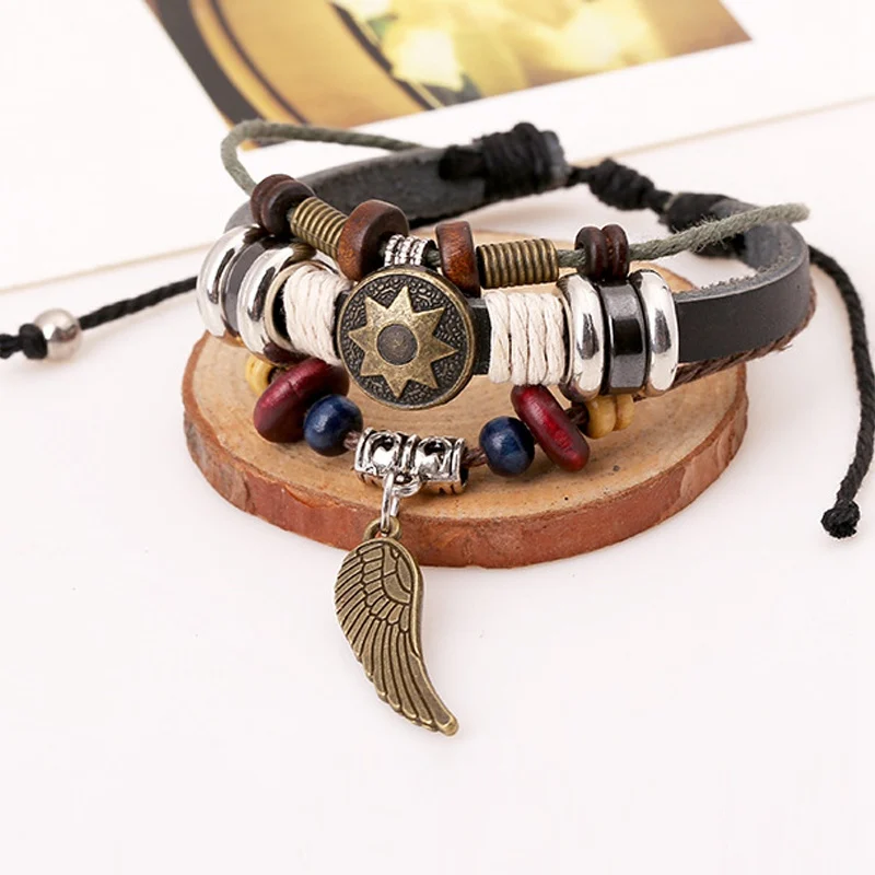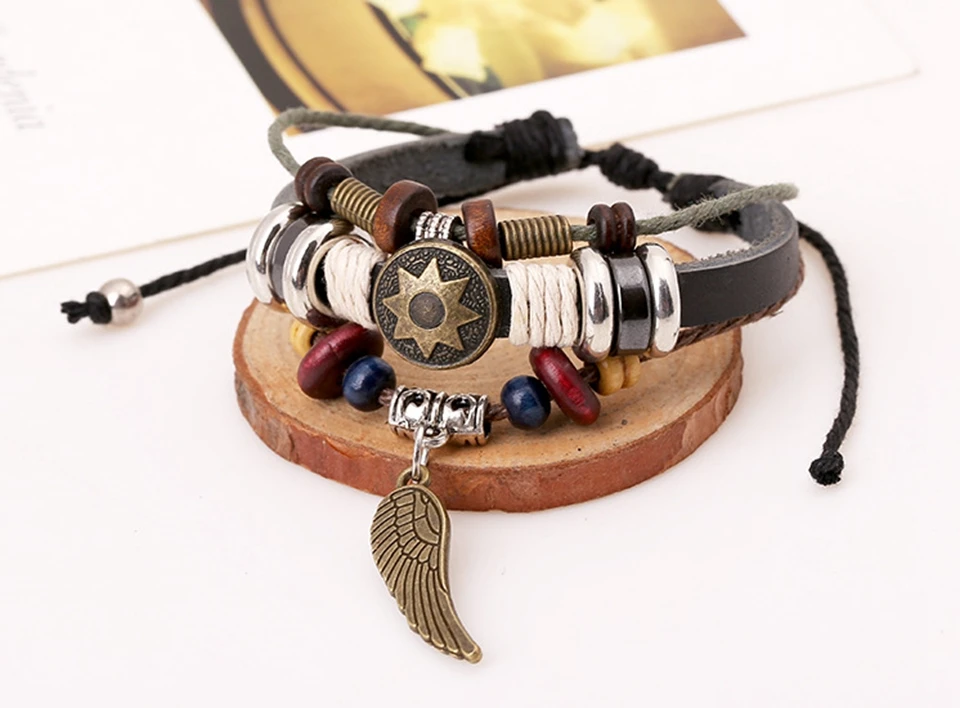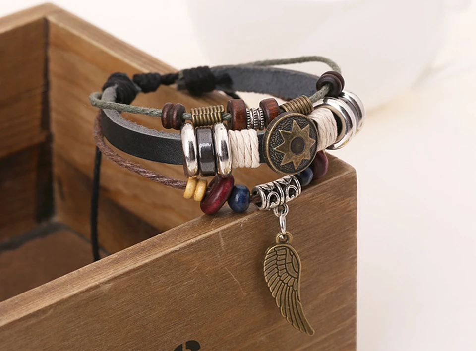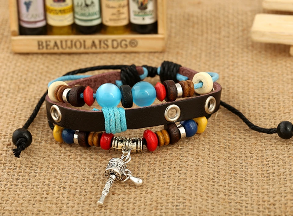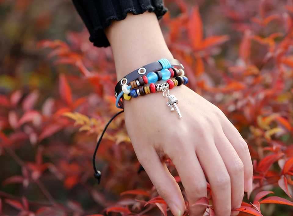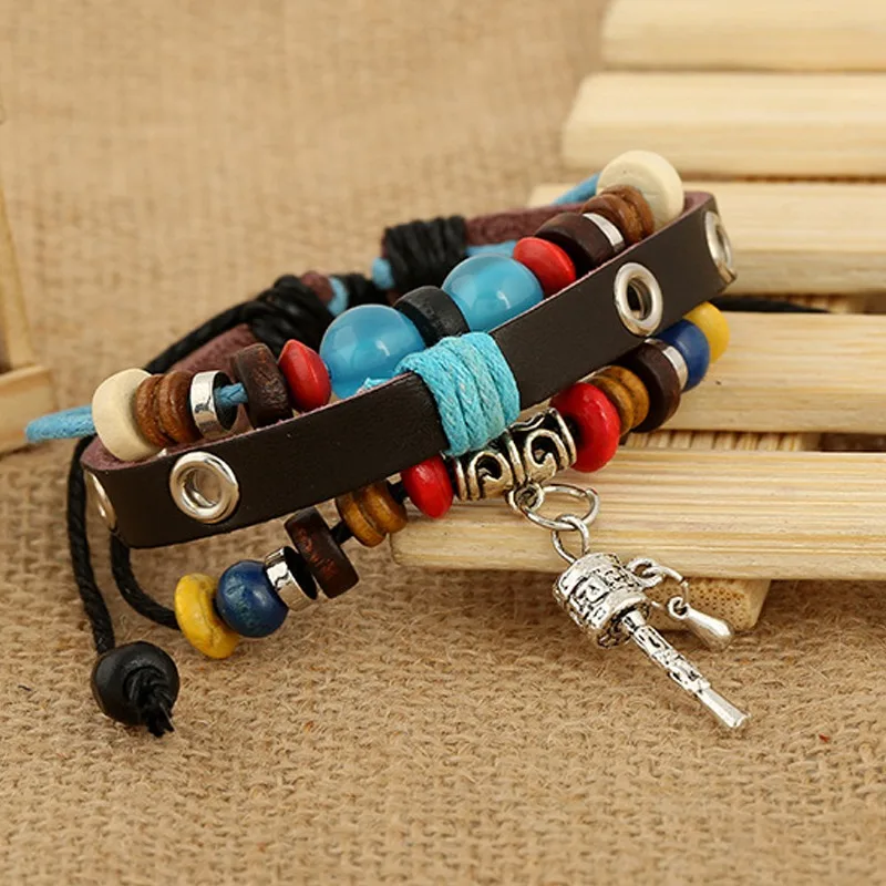 Item Name:Handmade leather plaited wrap bracelet charm pendant bracelet jewelry