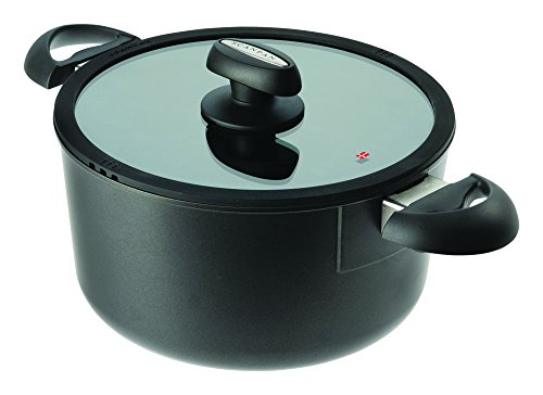 Luxurious Danish design, traditional, solid craftsmanship and the latest advances in technology combine to make Scanpan IQ the new cookware generation. Scanpan IQ is hand-crafted, squeeze-cast is recycled aluminum. IQ Cookware is suitable for induction and all other cook tops. The optimum thickness of the pan base prevents warping and keeps the pan base perfectly flat, especially important when used with glass top or ceramic ranges. The pan thickness and unique ceramic-titanium surface allows for browning, searing and deglazing. The patented nonstick surface is created by firing ceramic-titanium particles into the pan and a specially formulated nonstick compound is embedded in the ceramic-titanium surface. Durable surface allows use of metal utensils. Scanpan Green Tek non-stick surface is PFOA-free in all stages of the manufacturing process. Scanpan IQ Cookware can be used with high heat frying and is oven safe to 500-degrees. IQ Cookware features ergonomic handle design and lid knobs. Glass lid has vented silicone rim.Feature