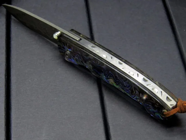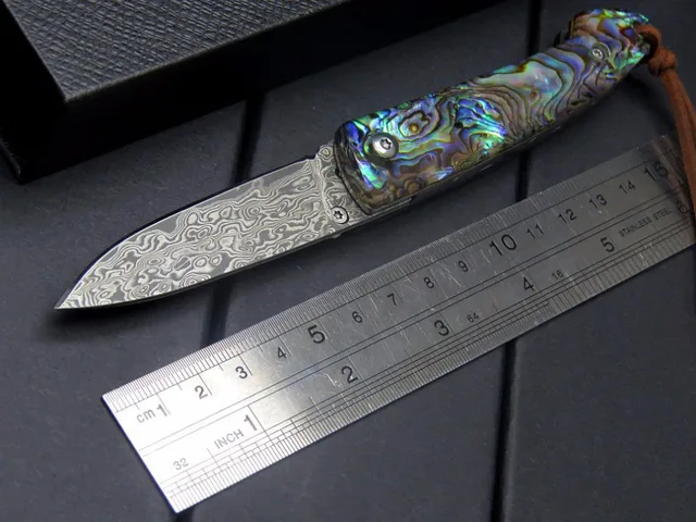 | [해외] Eafengrow EF83 다마스커스 접이식 칼 쉘 핸들 + 다마스커스 강철 블레이드 나이프 야외 도구 사냥 캠핑 나이프 + 도매 |