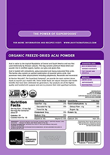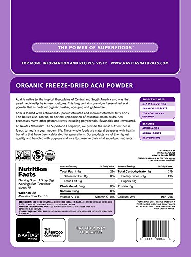 -. Binding : Grocery -. Brand : Navitas Naturals -. Feature : Food for modern life. Great for home consumption or use in your healthy restaurant or café. -. Label : Navitas Naturals -. Manufacturer : Navitas Naturals -. ProductGroup : Grocery -. ProductTypeName : GROCERY -. Publisher : Navitas Naturals -. Studio : Navitas Naturals -. Title : Navitas Naturals Organic Acai Powder