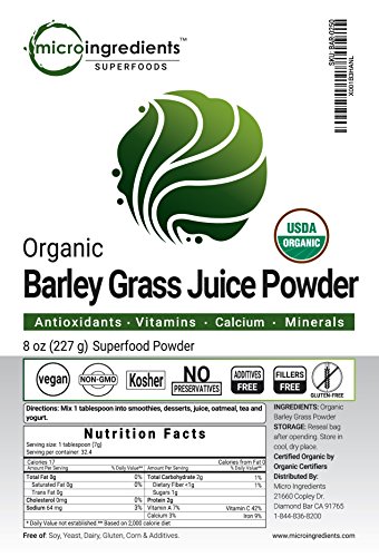 Micro Ingredients Certified Organic Barley Grass Juice Powder, 8 Ounce