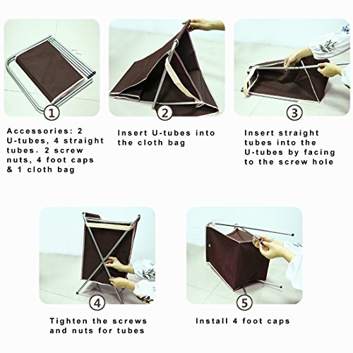 Laundry Basket with Lid, M&U Durable Laundry Hamper with Sturdy Aluminum Frame, Foldable Waterproof Laundry Sorter Avoid Mildew, Light Weight Storage Bin but Holds Large Load (pure brown)