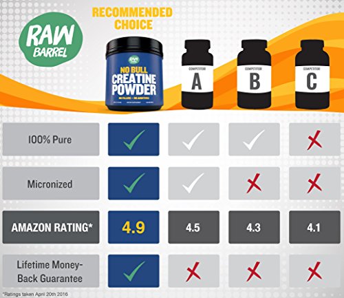 LIFETIME SATISFACTION GUARANTEED - We like to go the extra mile, which is why that if you don't see RESULTS or are not happy for ANY reason, you can contact us for a FULL REFUND, no questions asked. Making your purchase COMPLETELY RISK FREE. At Raw Barrel we believe customer service is just as important and the purest creatine.