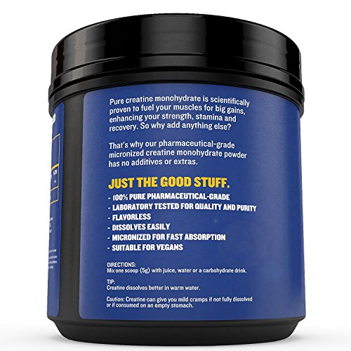 100% PURE, quality pharmaceutical grade and laboratory tested creatine monohydrate powder - don't clog up your body with any fake fillers. No added bull, just the good stuff. Our creatine powder is authenticity verified via UV Spectrometer testing and is vegan friendly.