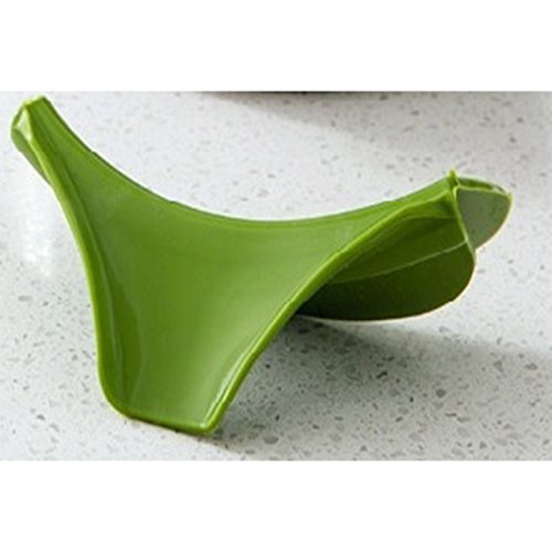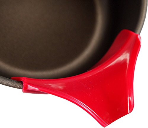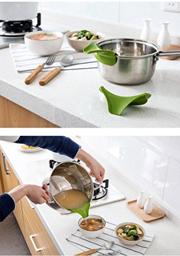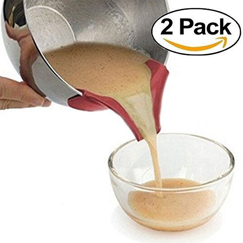 -. Feature : Material:High Temperature Food Grade Silicone. / Size:approximately 3"L x 5"W x 3/4"H / Unique design allows you to attach this gadget to nearly any bowl, pot or pan. / Drain pasta, get rid of pan grease, and pour cupcake batter with ease while using this pouring spout from the Clip On line. Made from red silicone, it is durable and long lasting. / It attaches to mixing and serving bowls, pots, pans, skillets, and double boilers for a mess-free, precision pouring and straining.