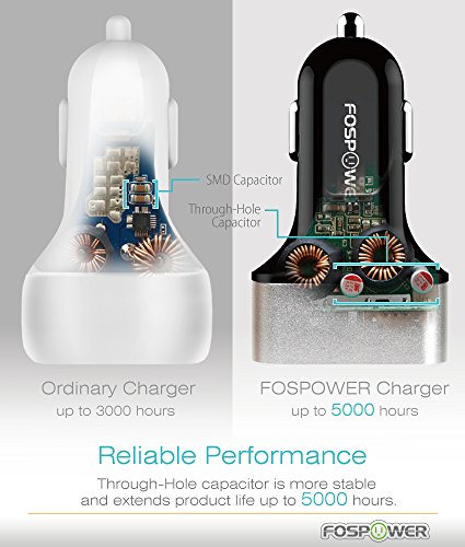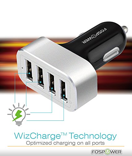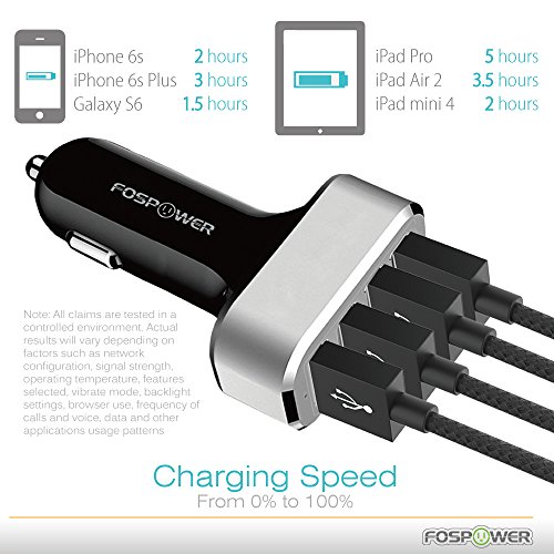 4 Ports Car Charger, FosPower (48W/9.6A) 4-Port USB Full Speed Charging Charger for iPhone 7 6 6S Plus, Galaxy S8, S8 Plus, S7 S6 Edge, Note 5 4, LG G6, LG V20 G5, iPad Air Pro Mini, Android Tablets