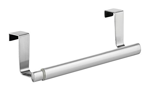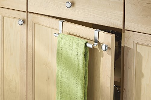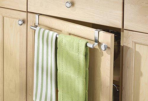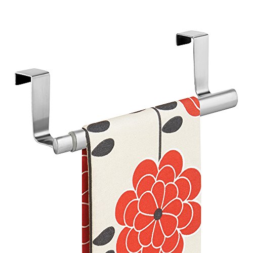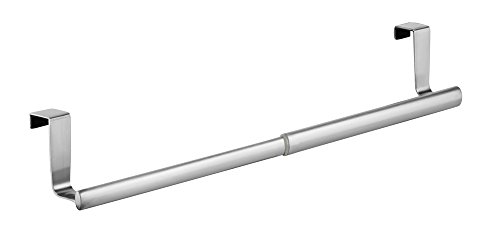 mDesign Over-the-Cabinet Expandable Kitchen Dish Towel Bar Rack - Brushed Stainless