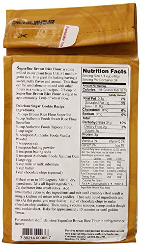 Authentic Foods Gluten Free Brown Rice Flour Superfine -- 3 lbs