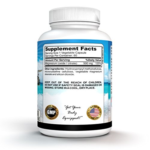 Magnesium 500mg 60 capsules | Supports Weight Loss by Flushing Out Colon Toxins| Non-Stimulating Formula | Helps Muscle and Nerve Function | Supports Healthy Immune System | Supports Digestive, Colon and Intestinal Health | Gentle and Effective | Helps Alleviate Occasional Bloating and Constipation | Helps Reduce Waste and Toxins | Magnesium 500mg 60 capsules 500mg Magnesium Oxide and Citrate Mineral Supplement Supports Muscles, Nerves, Bones, Eyes, Teeth, Helps with Relaxation and Sleeping Supports Flushing Out Colon Toxins