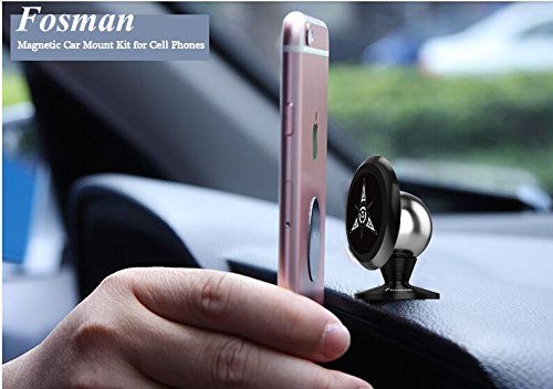 Mobile Phone Car Mount, Fosman Universal Magnetic Cell Phone Dashboard Car Mount Holder for iPhone 6 / 6s 5s 5c 4 Samsung Galaxy S7 Edge S6 S5 Note 5 4 , Sat Nav Mini Tablets (42mm Black)