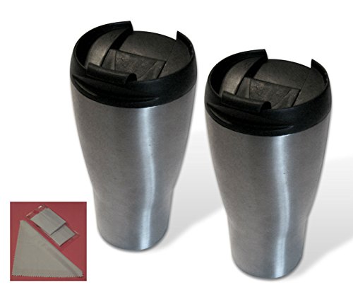 Set of 2 Travel Coffee Mugs Stainless Steel with BONUS Cleaning Cloths From Kerro Outlets®